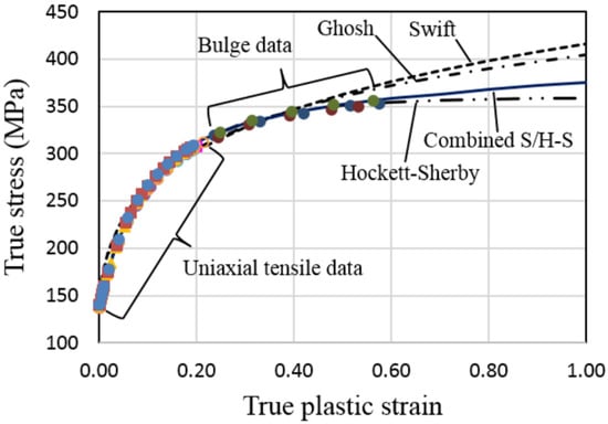 - Zhao, K.; Wang, L.; Chang, Y.; Yan, J. Identification of post-necking stress-strain curve for sheet metals by inverse method. Mech. Mater. 2016, 92, 107–118. [Google Scholar] [CrossRef]