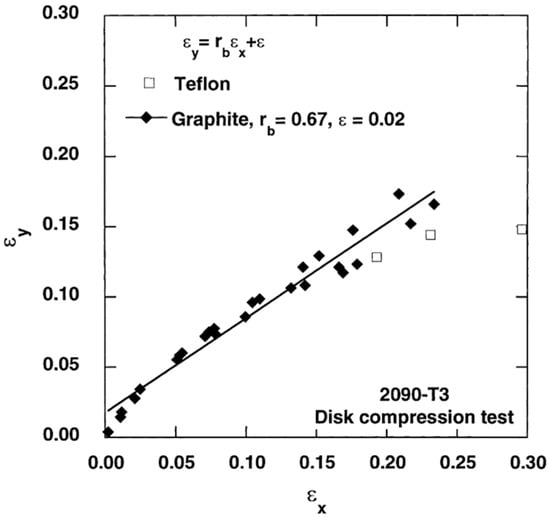 Thus, Hill was the first to create a mathematical model that takes into account the effects of material anisotropy, which is very common in metal sheets. Other researchers, based on the idea that a microscopic flaw could turn into a macroscopic flaw through the accumulation of deformation or, in other words, damage accumulation, proposed their models []. Some authors [,,,] developed several anisotropic yield functions by introducing more coefficients. Other works were developed based on the three invariants of the stress tensor [,,,]