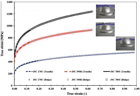 In the literature it is possible to find several studies on advanced high-strength steel development [,,], sheet metal forming processes, and the application of numerical simulations [,,]. It was shown by several industrial examples that numerical simulations can predict technological problems and help to solve them [,]. However, studies developed in recent years show the effectiveness of using more complex models that can be applied to newly developed steels. There are some studies that concentrate on the simple shear testing of sheet metals and their application in sheet metal forming []. In Coppieters et al.’s [] paper, they present an overview of the state-of-the-art methods to acquire the large strain flow curve of sheet metal.