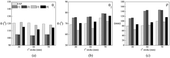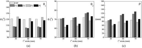 In deep drawing, the sheet is initially bent around a radius and subsequently straightened, leading to the unbending of the material and generating distinct stress states across different regions of the sheet. During the initial bending, tensile stresses develop on the outer surface, while compressive stresses form on the inner surface. In the subsequent stage, as the material undergoes unbending, the stress states are reversed, resulting in tensile stresses on the inner surface and compressive stresses on the outer surface (Figure 5). This situation generates a residual stress that promotes a “torsion” in the part. This effect can be studied through a standard geometry as represented in Figure 6a, with the measurement of angles θ1, θ2 and of the radius ρ as shown in Figure 6b.