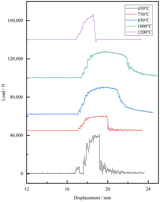 The load–displacement curves of the test steel at −40 °C under different secondary thermal cycle peak temperatures.