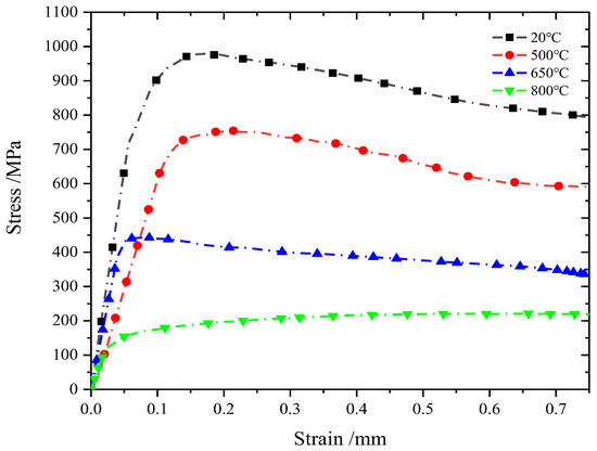 Stroke–load curve at 650 °C.