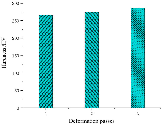 Vickers hardness of different deformation passes.