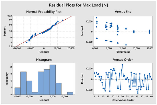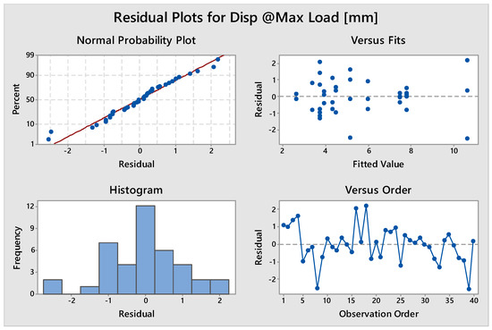 ANOVA–distribution of data and residual for Displacement at Max Load.