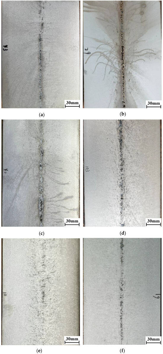 Central longitudinal sections of billet with a length of 300 mm were collected for macrostructure etching with a 50% hydrochloric acid aqueous solution at 80 °C for 20 min.