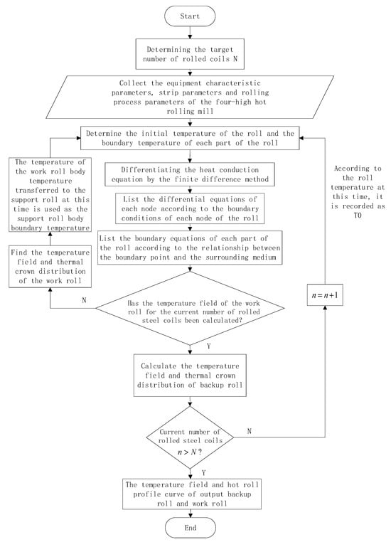 Flow chart of the calculation of the roll temperature field and hot roll shape.
