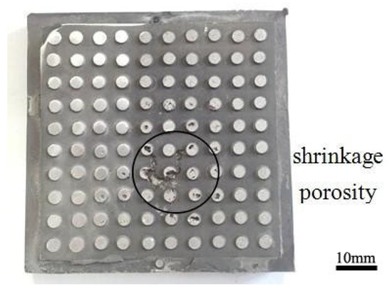 - During the solidification process, the shrinkage porosity emerged at the center of composites, which was the final solidification position. The highest stress concentration of 450 MPa was located near the runner at the bottom of the composites, coinciding with the crack defect in the SiC3D/Al composite produced in the practical squeeze cast experiment.