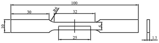 Therefore, the original microstructure of the samples at room temperature was completely presented by the austenite phase. The plates were then rolled to 1.5 mm in multiple passes at room temperature, corresponding to the rolling deformation degrees of 0%, 42%, 55%, 70%, 85% and 90%. The cold rolled plates were marked as 0%-CR, 42%-CR, 55%-CR, 70%-CR, 85%-CR and 90%-CR accordingly. The rolling direction is along the length direction. The rolling process was performed in multiple passes with a reduction of 0.2 mm in each pass. Subsequently, all of the deformed samples were cryogenically treated in liquid nitrogen for 24 h to promote the transformation into martensite. The samples after both rolling and cryogenic treatment were named 0%-CR–CT, 42%-CR–CT, 55%-CR–CT, 70%-CR–CT, 85%-CR–CT and 90%-CR–CT. The FMARS 9000 (Future-Tech, Tokyo, Japan) automatic microhardness tester was used to assess the Vickers hardness of the samples under the load of 100 gf applied for 10 s. The tensile properties were measured by means of an MTS universal hydraulic servo testing machine (MTS, Eden Prairie, MN, USA) at room temperature. The sample size was selected according to the E8-09 standard that refers to the ASTM metal material tensile test method. Figure 2 shows the dimensions of the tensile sample. The tensile speed at room temperature was 3 mm/min, and the tensile direction was matched with the rolling direction. Three tensile samples were tested under each condition.