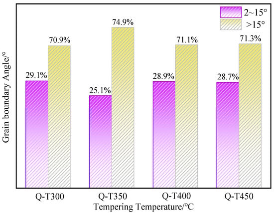Statistical diagram of grain boundary proportions after tempering at 300 °C~450 °C.