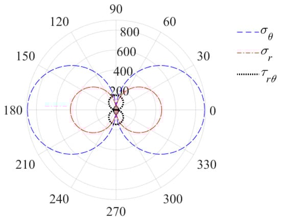 Stress field in MPa, at the hole surface in contact with the inserted pin (From Equation (14)).