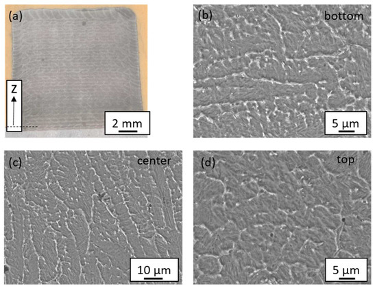 Prior to the analysis of microstructure and the determination of mechanical properties, the chemical composition of manufactured 30-layer specimens was obtained by means of Optical Emission Spectroscopy (OES). Table 4 shows the measured chemical compositions of generated tool steel specimens.