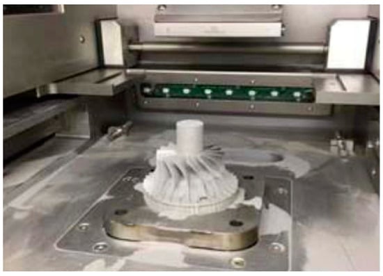 Turbocharger rotor directly after L-PBF process. Reproduced from Reference [80].