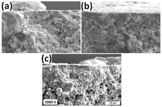 Cross-section of the nitrided samples: (a) Mg95–Zn5, (b) Mg90–Zn10, and (c) Mg85–Zn15.
