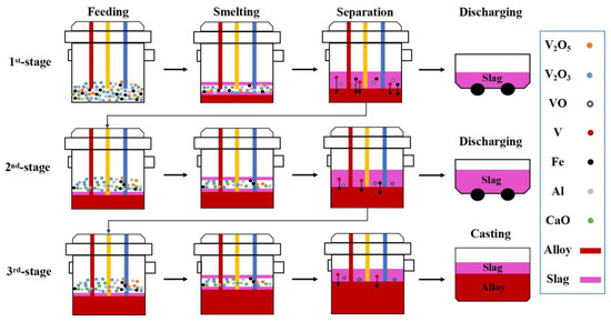 Three-stage smelting process diagram.