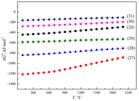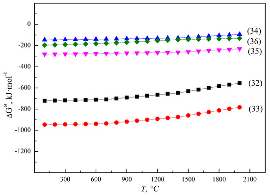 ΔGΘ for thermic reactions of vanadium and silicon oxides.