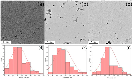 Carbon replica micrographs and particle size distribution at CTs of (a,d) 600; (b,e) 625; and (c,f) 650 °C.