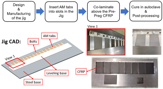 - Design and manufacture of a dedicated steel jig tailored to accommodate 3D printed metal components within specified slots. These slots are configured to match the thickness of the metal substrate, establishing a level surface conducive to CFRP lamination.