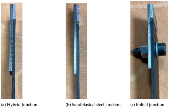 - Bolted Junction: CFRP is laminated separately, and after curing the epoxy resin, the two materials are joined with an M6 bolt (grade 8.8) tightened at 11 N m;