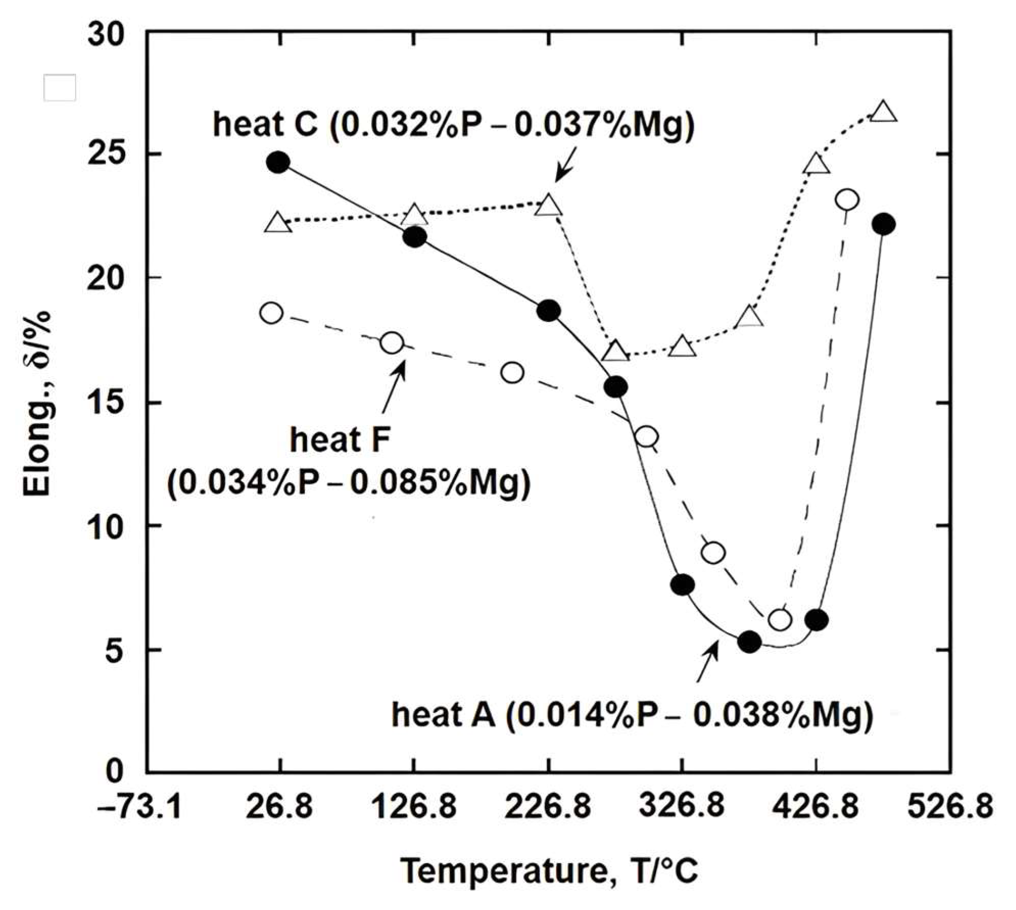 - Chen, S.F.; Lui, T.S.; Chen, L.H. The effect of phosphorus segregation on the intermediate-temperature embrittlement of ferritic, spheroidal graphite cast iron. Metall. Mater. Trans. A 1994, 25, 557–561. Available online: https://link.springer.com/article/10.1007/BF02651597 (accessed on 13 December 2023). [CrossRef]