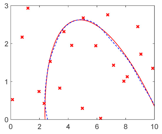 Twenty samples obtained via Latin hypercube sampling were selected to construct the RBF model. The samples (red cross), true curve of (red solid line), and predicted curve using RBF (blue dashed line) are shown in Figure 9. As can be seen, the RBF model has good fitting ability to the nonlinear example with fewer samples. Therefore, RBF was used in this paper to approximate the implicit relationship between optimization variables and performance responses.