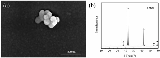 (a) SEM morphology and (b) XRD patterns of MgO particles.