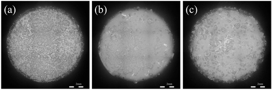 For the microhardness test, the specimens were cut into φ8×3 mm pieces and sanded with 800#, 1500#, and 3000# sandpaper until the surface was flat. Then, the specimens were polished with a W1 polishing solution and a matching polishing disk until the surface was free of scratches. The microhardness was tested using an HMV-2T microhardness tester (Shimadzu, Kyoto, Japan) with a loading load of 490.3 mN and a loading time of 10 s. For each material, twenty points were examined, and the average hardness was calculated.