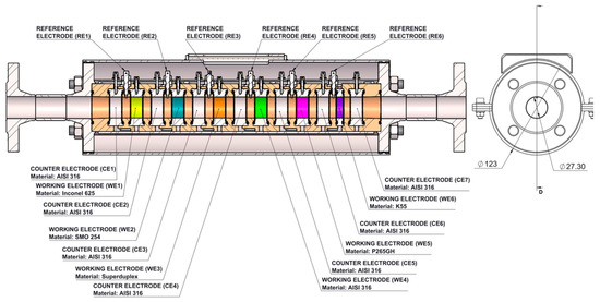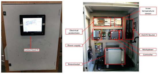 To complete the corrosion monitoring system, an electrical panel is also designed and manufactured based on the functional scheme depicted in Figure 5.