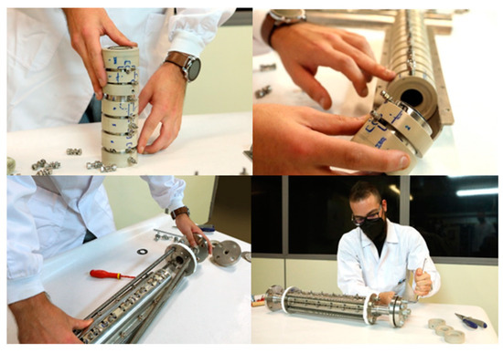 The entire system was manually assembled according to the order established in the design to ensure electrical functionality and leak tightness of the equipment. This assembling procedure is depicted in Figure 7.