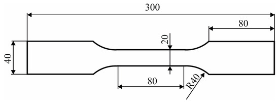 Geometry of the specimens for tensile tests (the specimen thickness was 5 mm).