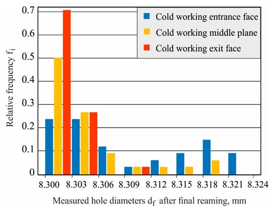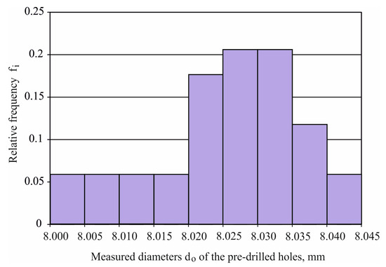 (7) Selection of a reamer for the final reaming of holes and statistical evaluation of the scattering of the final dimensions of processed holes. The reamer diameter was selected according to the condition: , where is the maximum measured diameter after cold working.