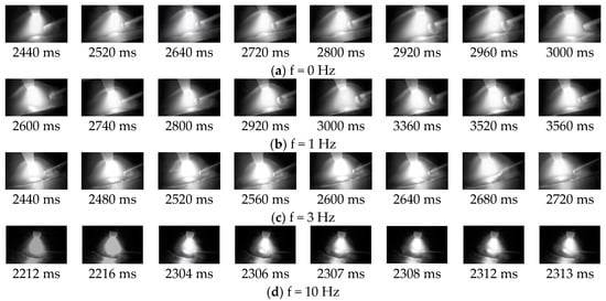 - Through a comparative analysis of the droplet detachment behavior at different frequencies of wire vibration feeding, it was found that at f = 3 Hz, a stable intermittent liquid bridge transition can be achieved.