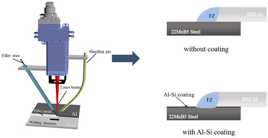 Schematic diagrams of laser welding–brazing of Al/steel.