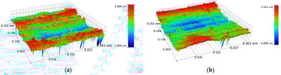 Worn surfaces of (a) HC1 and (b) HC2 in 3D.
