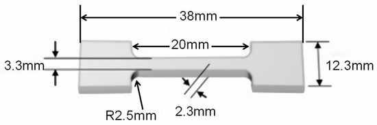 Vickers hardness testing was conducted using a hardness testing system (HV-10MPTA, Laizhou Veiyee, Laizhou, China). Indentation was performed at the center of the specimens, with a load of 500 g and a dwell time of 15 s. To obtain more reliable data, 7 different points were selected for each specimen, and maximum and minimum values were discarded, leaving 5 remaining values. The average of these 5 values was taken as the hardness value. Tensile performance testing was conducted using a tensile testing machine (UTM6104, Shenzhen Suns Technology, Shenzhen, China), and the tensile rate was set at 0.5 mm/s. The dimensions of the tensile specimen are shown in Figure 1.
