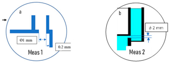 The Δp = ρgΔh differential pressure is compensated by an external pcomp = ρgΔh pressure produced by a compressor at measurement gauge “b”; the “0” level is restored at both gauges “a” and “b” (Figure 9) [31,32,33].