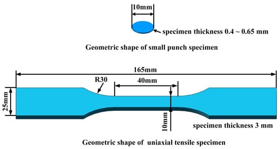 - Mao, X.; Takahashi, H. Development of a further-miniaturized specimen of 3 mm diameter for TJZM disk (0.3 mm) small punch tests. J. Nucl. Mater. 1987, 150, 42–52. [Google Scholar] [CrossRef]