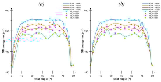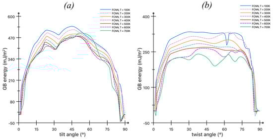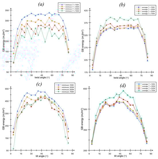 - Foiles, S.M. Temperature dependence of grain boundary free energy and elastic constants. Scr. Mater. 2010, 62, 231–234. [Google Scholar] [CrossRef]