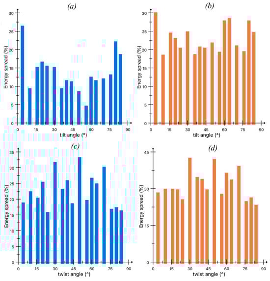 - The obtained energy spread shows the level of decrease in the minimum GB energy with increasing temperature and the level of total energy change with taking into account the increase in the average energy of the boundaries. It is shown that the energy spread is generally larger for the twist GBs, with the maximum energy growth observed in the region of high-angle boundaries. The level of energy change with increasing temperature is smaller for the tilt GBs; the energy spread shifts towards low-angle boundaries, which may be due to a rather large number of special high-angle boundaries. The decrease in the minimum energy is compared with the results of other works and is in reasonable agreement, and the average energy decrease is about 20%.