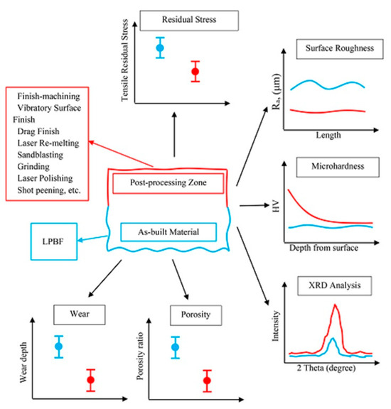 - Ye, C.; Zhang, C.; Zhao, J.; Dong, Y. Effects of Post-processing on the Surface Finish, Porosity, Residual Stresses, and Fatigue Performance of Additive Manufactured Metals: A Review. J. Mater. Eng. Perform. 2021, 30, 6407–6425. [Google Scholar] [CrossRef] [PubMed]