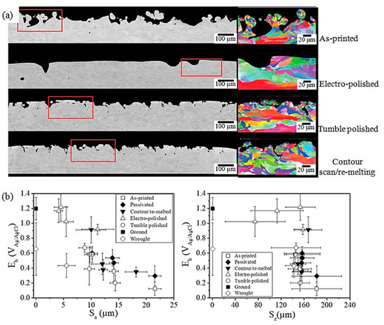 - Kaynak, Y.; Kitay, O. The effect of post-processing operations on surface characteristics of 316L stainless steel produced by selective laser melting. Addit. Manuf. 2018, 26, 84–93. [Google Scholar] [CrossRef]