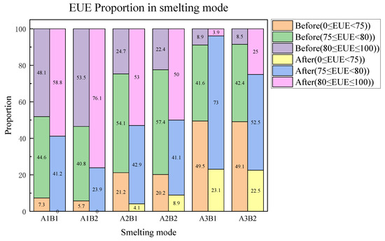 EUE stacked bar chart under different smelting modes.