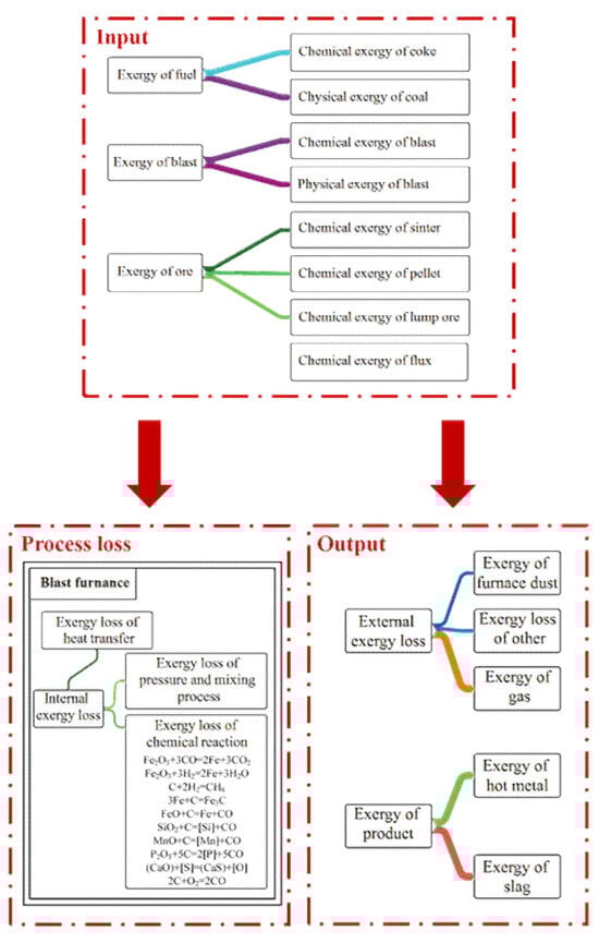Exergy analysis model diagram of blast furnace smelting.