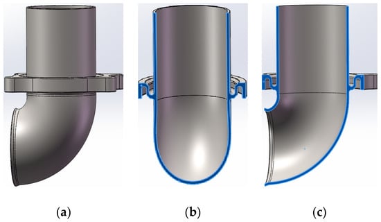 The exhaust pipe is a crucial component of the engine and is necessary for it to operate properly [,,]. Exhaust pipes for high-horsepower engines, like those found in specialty vehicles, maritime vessels, and huge internal combustion engines, must be structurally strong and perform exceptionally well for the engine to run properly [,]. However, the exhaust pipes for high-horsepower engines that are currently being manufactured have some defects, particularly in the case of the exhaust pipes with a curved shape, which has an impact on the exhaust pipes’ performance and the advancement of high-horsepower engines [,,,]. These defects are caused by problems in the process of preparing exhaust pipes for high-horsepower engines. Therefore, it is crucial to research and optimize the exhaust elbow manufacturing process for high-horsepower engines to produce high-quality exhaust elbows.