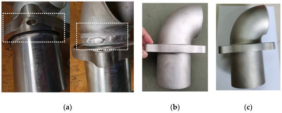 As can be clearly seen in Figure 11, the connection parts of the integrated molding process of investment casting are significantly better than those of the traditional machining–welding process. The appearance of castings before and after optimizing process parameters is essentially the same.
