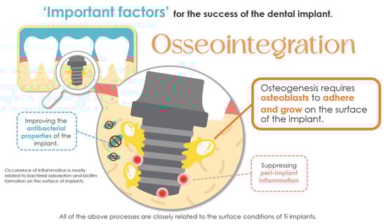 - Kligman, S.; Ren, Z.; Chung, C.-H.; Perillo, M.A.; Chang, Y.-C.; Koo, H.; Zheng, Z.; Li, C. The Impact of Dental Implant Surface Modifications on Osseointegration and Biofilm Formation. J. Clin. Med. 2021, 10, 1641. [Google Scholar] [CrossRef] [PubMed]