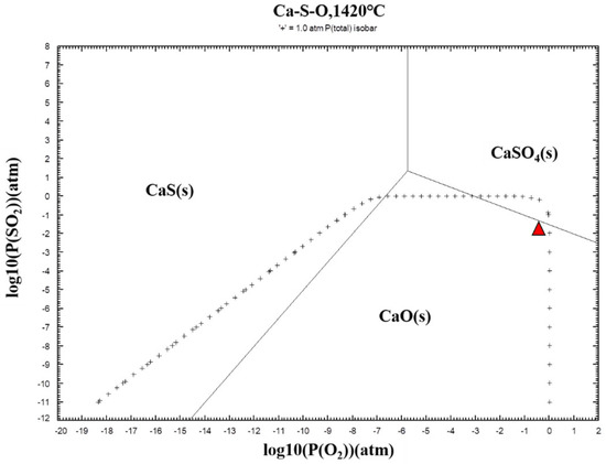 - At 1420 °C, under oxidizing conditions, sulfur residue persists in the slag as the CaS phase following oxidation at low oxygen pressure ( < 0.20 bar). However, under high oxygen pressure ( ≥ 0.20 bar), sulfur residue oxidizes from the CaS phase to form the 11CaO·7Al2O3·CaS phase within the slag. The residual sulfur phase in the oxidized slag remains unchanged with varying oxidation times.