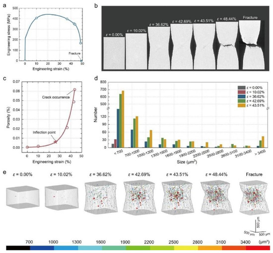 - Chen, J.; Magdysyuk, O.V.; Li, X.; Withers, P.J.; Yan, K. Investigation of ductile damage in dual phase steel during tensile deformation by in situ X-ray computed tomography. Eng. Fract. Mech. 2023, 293, 109711. [Google Scholar] [CrossRef]