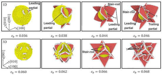 - Bringa, E.M.; Traiviratana, S.; Meyers, M.A. Void initiation in fcc metals: Effect of loading orientation and nanocrystalline effects. Acta Mater. 2010, 58, 4458–4477. [Google Scholar] [CrossRef]