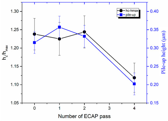 The effect of ECAP passes on the hc/hmax ratio and pile-up heights.