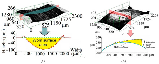 Measuring wear (a) and adhesion transfer layer thickness (b).